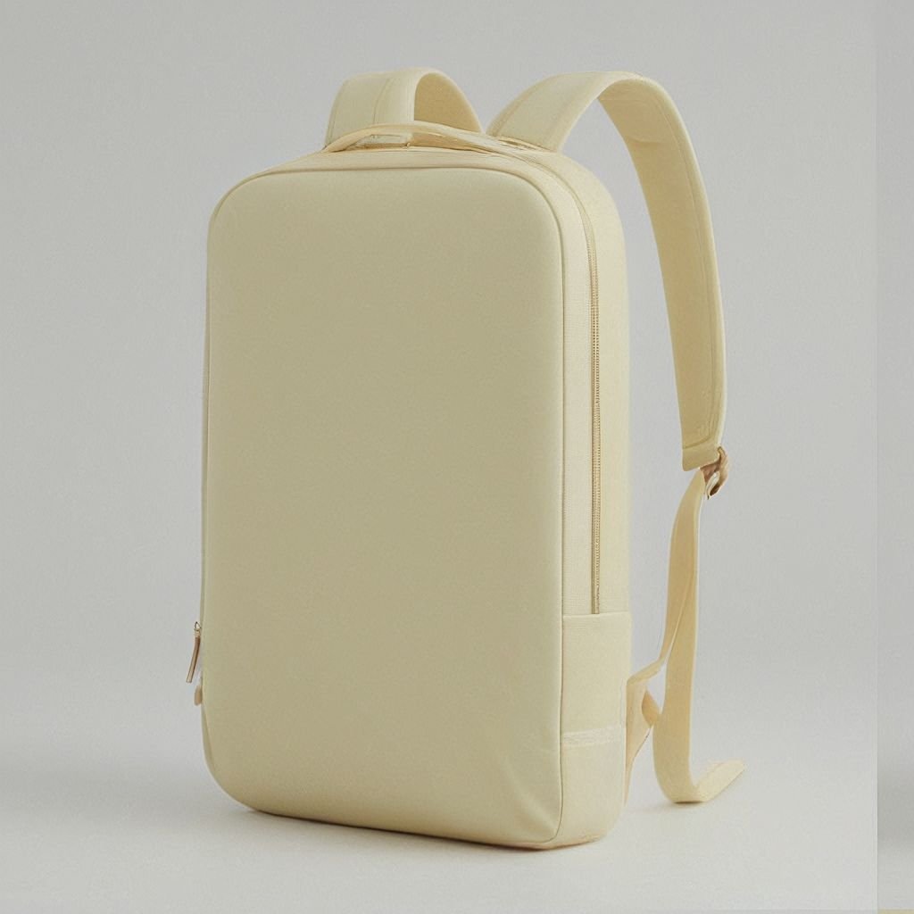 Plecak wyróżnia się minimalistycznym, funkcjonalnym designem – prostokątny kształt z zaokrąglonymi rogami zapewnia nowoczesny wygląd. Można go nosić na ramionach dzięki szelkom lub wygodnie chwycić za górny uchwyt – w zależności od sytuacji. Zewnętrzna powłoka wykonana jest z wodoodpornego materiału, co gwarantuje bezpieczeństwo zawartości w każdych warunkach pogodowych.
